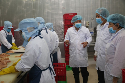 Phó Thủ tướng Thường trực Chính phủ Trương Hòa Bình thăm dây chuyền giết mổ của Công Ty TNHH Ba Huân. Ảnh: VGP/Mạnh Hùng.
