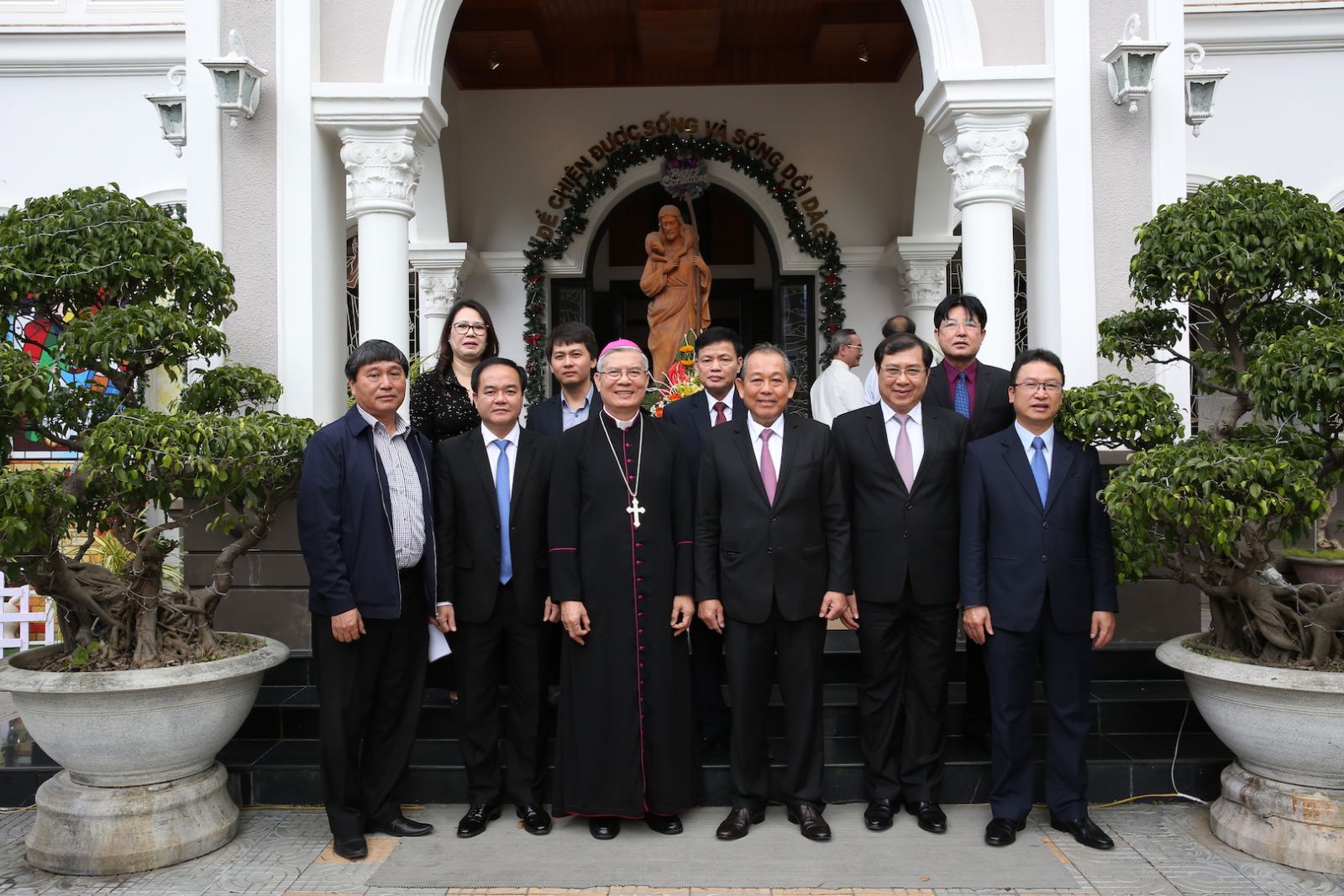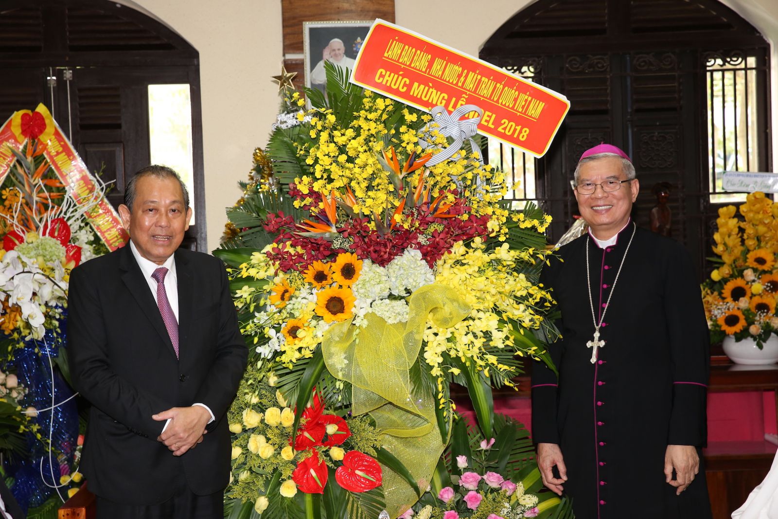 VNHN - Ngày 23/12, tại TP Đà Nẵng, Ủy viên Bộ Chính trị, Phó Thủ tướng Thường trực Chính phủ Trương Hòa Bình đến chúc mừng Giáng sinh 2018 Tòa Giám mục Đà Nẵng và Hội đồng Giáo phẩm Hội thánh Tin lành Việt Nam (miền Nam).