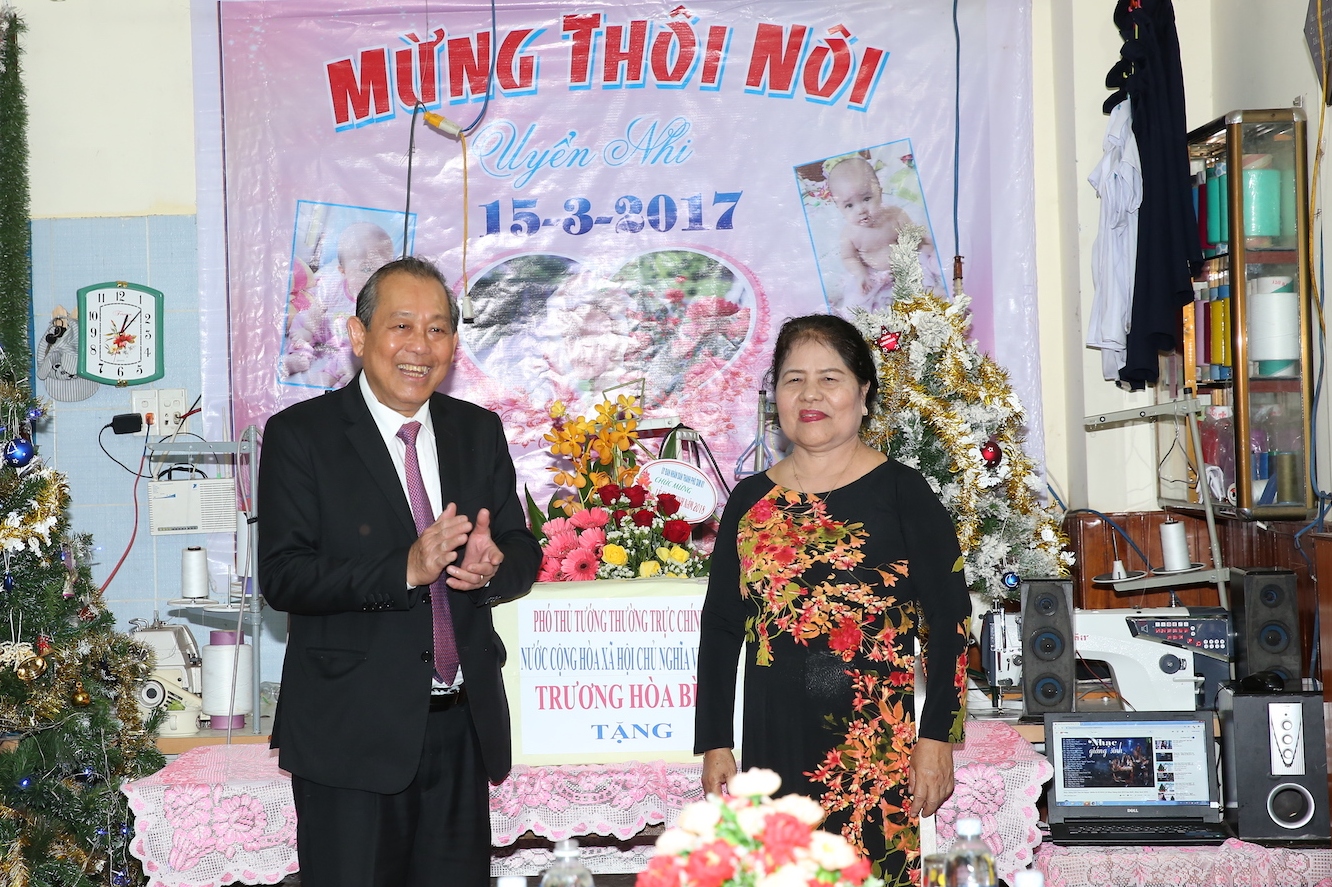Nhân dịp này, Phó Thủ tướng Thường trực Trương Hòa Bình chúc mừng gia đình tín hữu Tin lành tiêu biểu Đinh Thị Vượt, gia đình có công với cách mạng, đồng bào dân tộc Pa cô, trú tại quận Cẩm Lệ, Thành phố Đà Nẵng./.