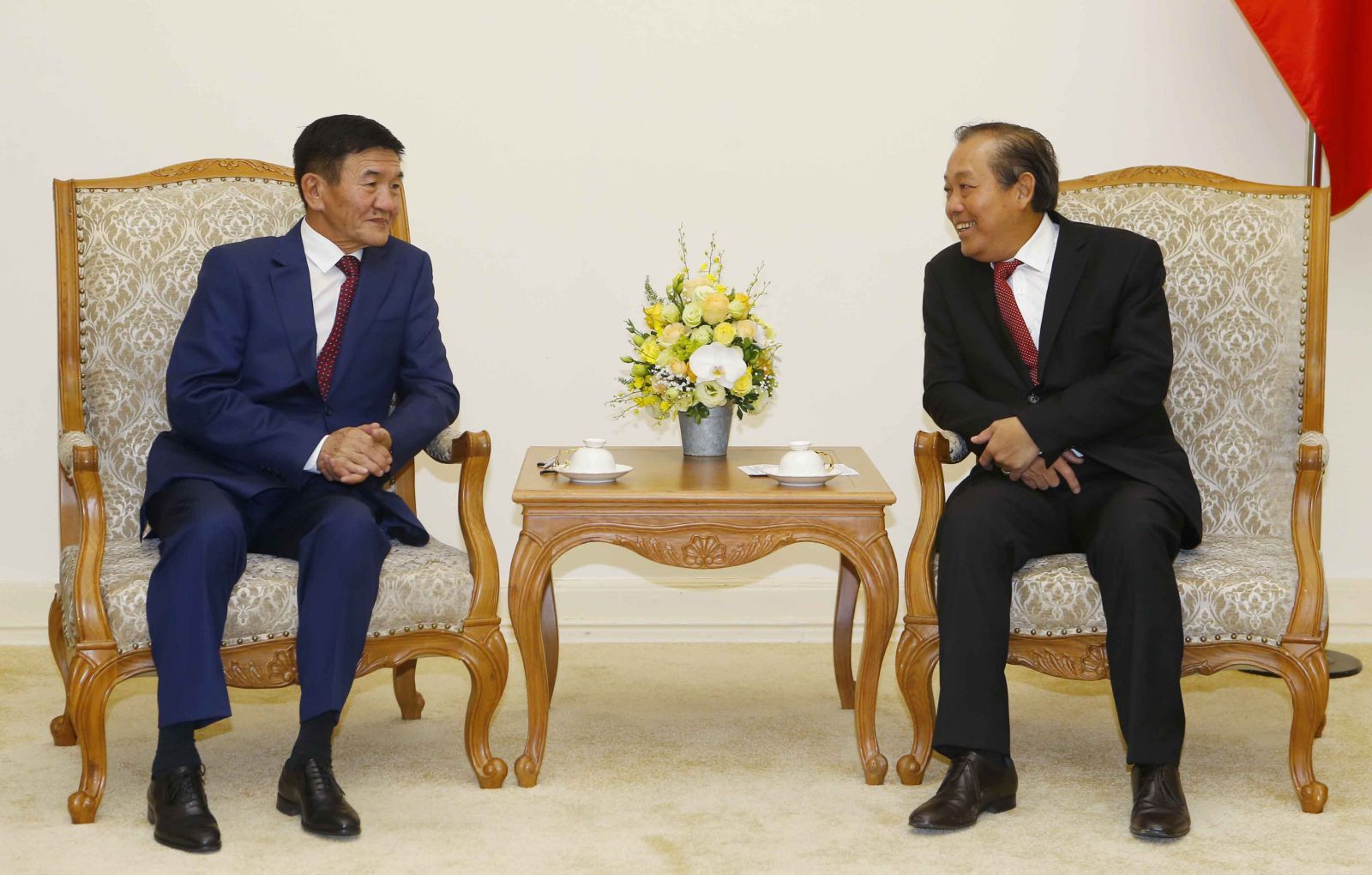 Phó Thủ tướng Trương Hòa Bình và Bộ trưởng Bộ Tư pháp và Nội vụ Mông Cổ Tsend Nyamdorj. Ảnh: VGP/Lê Sơn