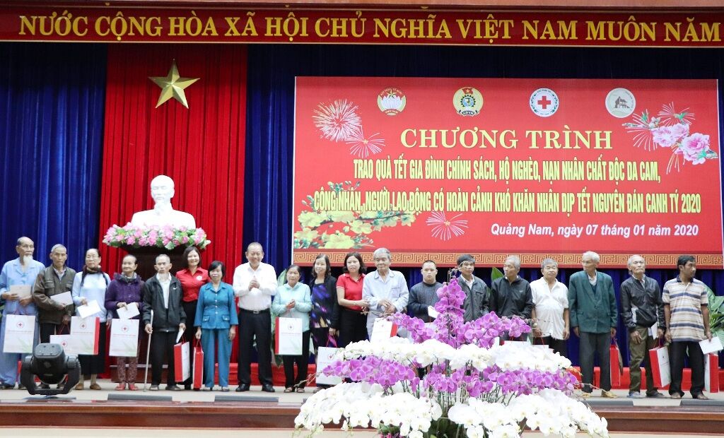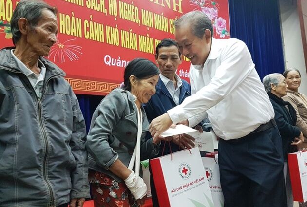 VNHN - Sáng 7/01, tại TP Tam Kỳ (Quảng Nam), Ủy viên Bộ Chính trị, Phó Thủ tướng Thường trực Chính phủ Trương Hòa Bình đã đến thăm, trao quà 350 suất quà Tết (mỗi suất trị giá 1 triệu đồng) cho hộ nghèo, nạn nhân chất độc, da cam, công nhân, người lao động có hoàn cảnh khó khăn nhân dịp Tết Nguyên đán Canh Tý - 2020.