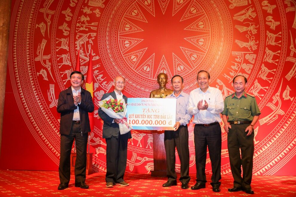 Nhân dịp này, Phó Thủ tướng đã trao tặng tỉnh Đăk Lăk 300 triệu đồng để thực hiện công tác an sinh xã hội. trong đó có 100 triệu đồng tặng cho Quỹ khuyến học tỉnh Đăk Lăk để chăm lo cho học sinh, con em người dân tộc thiểu số còn 200 triệu đồng tặng cho địa phương hỗ trợ xây dựng nhà đại đoàn kết ở tỉnh Đăk Lăk.