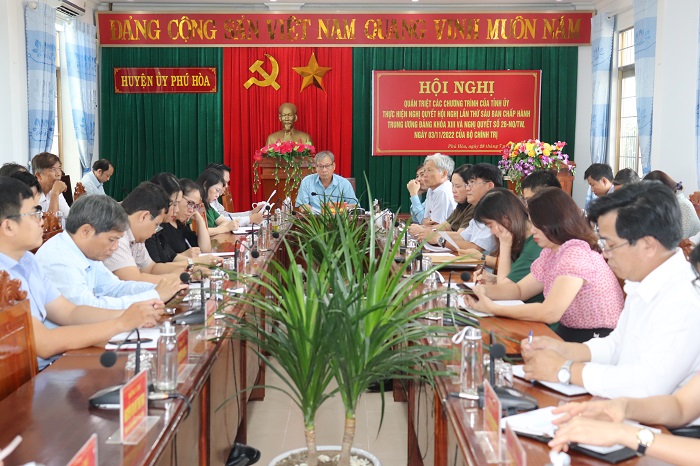 Ông Lê Ngọc Tính, TUV, Bí thư Huyện ủy, Chủ tịch HĐND huyện khẳng định: nửa nhiệm kỳ qua, Đảng bộ, chính quyền và nhân dân huyện Phú Hòa đã chủ động, tích cực, chung sức, đồng lòng, quyết tâm triển khai nhiều giải pháp, nỗ lực vượt qua khó khăn thực hiện đạt 10/13 chỉ tiêu NQĐH Đại hội Đảng bộ huyện lần thứ XVI đề ra. Trong nửa cuối nhiệm kỳ 2020 - 2025, Đảng bộ huyện Phú Hòa tiếp tục nâng cao vai trò, trách nhiệm lãnh đạo của các cấp ủy đảng, xây dựng hệ thống chính trị vững mạnh, đẩy mạnh phát triển kinh tế - xã hội bền vững, trong đó từng bước phát triển kinh tế nông nghiệp theo hướng hiện đại, triển khai thực hiện tốt các chương trình, dự án về giảm nghèo. Đổi mới phương thức lãnh đạo, chỉ đạo trong triển khai thực hiện công tác xây dựng Đảng, xây dựng hệ thống chính trị vững mạnh, thực hiện tốt phương châm “Đoàn kết - Dân chủ - Kỷ cương - Hành động - Phát triển” với tinh thần: Nhận thức phải chín, tư tưởng phải thông, quyết tâm phải cao, nỗ lực phải lớn, phương pháp phải đúng, hành động phải quyết liệt, khen thưởng phải kịp thời, xử lý phải nghiêm minh. Phấn đấu thực hiện thắng lợi các mục tiêu, nhiệm vụ mà Nghị quyết Đại hội Đảng bộ huyện đã đề ra.