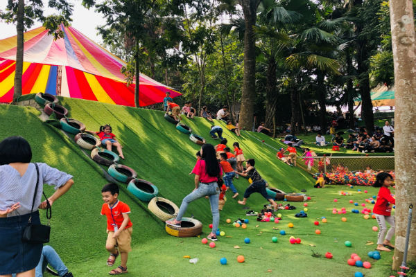 Vui chơi, ăn uống "lộ thiên" đem lại cảm giác phấn khích cho các du khách "nhí".