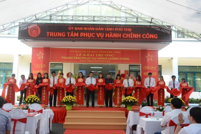 Các Đại biểu Tỉnh Phú Thọ cắt băng khai trương Trung tâm phục vụ Hành chính công Tỉnh Phú Thọ (01/10/2018)