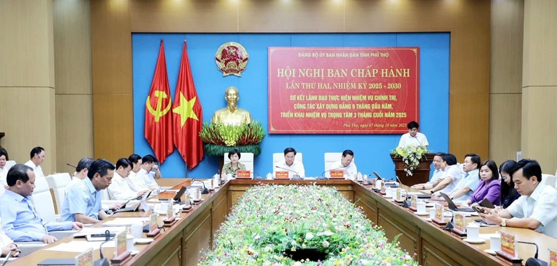 Hội nghị lần thứ hai nhiệm kỳ 2025-2030 BCH Đảng bộ UBND tỉnh Phú Thọ (7/10/2025) sơ kết công tác lãnh đạo thực hiện nhiệm vụ chính trị, xây dựng Đảng 9 tháng đầu năm, triển khai nhiệm vụ trọng tâm 3 tháng cuối năm 2025 và các nội dung quan trọng khác thuộc thẩm quyền.