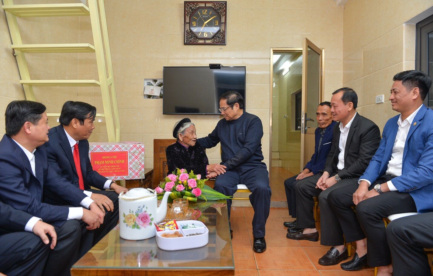 Trưởng ban Tổ chức Trung ương Phạm Minh Chính (nay là Thủ tướng Chính phủ) và đoàn công tác đã tới thăm, động viên, trao quà cho mẹ liệt sỹ Trần Thị Nhị - 103 tuổi ở khối 1 phường Hồng Sơn (tháng 2/2020)