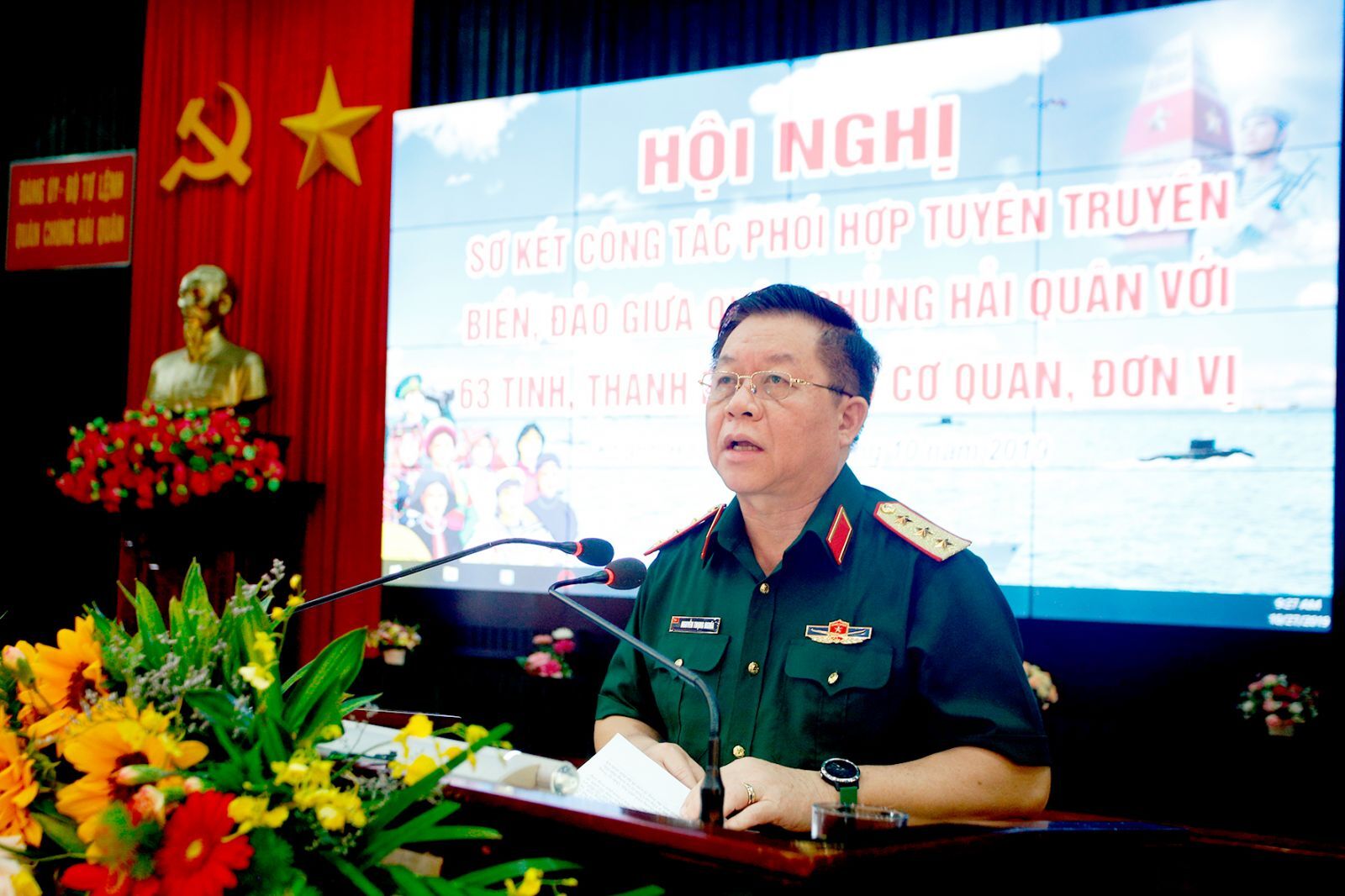 VNHN - Sáng 25-10, tại TP. Cam Ranh, tỉnh Khánh Hòa, Quân chủng Hải quân tổ chức Hội nghị sơ kết công tác phối hợp tuyên truyền biển, đảo (TTBĐ) giữa Quân chủng Hải quân với 63 tỉnh, thành phố và 15 cơ quan, đơn vị.