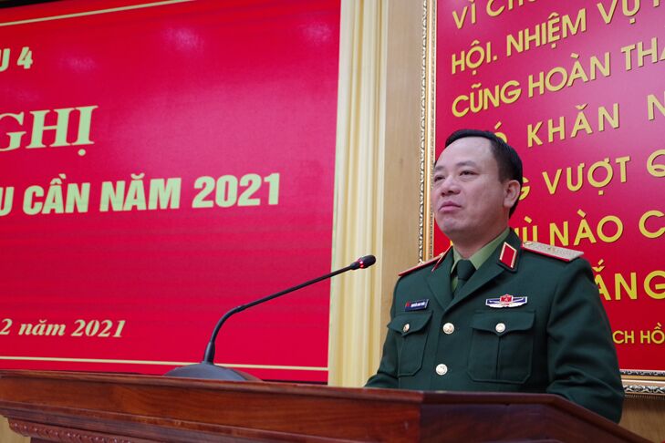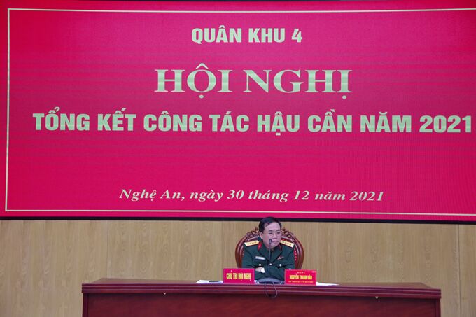 Phát biểu tại hội nghị đồng chí Thiếu tướng Nguyễn Anh Tuấn – Phó Tư lệnh Quân khu 4, đã ghi nhận, biểu dương, đánh giá cao những kết quả đạt được công tác hậu cần trong năm 2021. Bước sang năm 2022, đồng chí Phó Tư lệnh đề nghị: Cấp ủy, chỉ huy, cán bộ nhân viên hậu cần các cấp thường xuyên nắm chắc tình hình đề ra biện pháp lãnh đạo, chỉ đạo tổ chức thực hiện có hiệu quả. Chủ động dự lượng vật chất trang bị hậu cần cho các nhiệm vụ SSCĐ, nhất là phòng chống thiên tai, bão lụt. Quản lý chặt chẽ giá lương thực, thực phẩm, thực hiện tốt công tác khai thác, tạo nguồn, giữ vững ổn định chất lượng bữa ăn bộ đội. Thực hiện tốt các biện pháp phòng chống dịch bệnh cho gia súc, gia cầm, tổ chức tăng đàn, tái đàn gia súc, gia cầm; phát huy hiệu quả của các mô hình tăng gia sản xuất. Thực hiện tốt công tác quản lý, chăm sóc sức khoẻ bộ đội, triển khai thực hiện quyết liệt các biện pháp phòng chống dịch Covid-19. Sẵn sàng nhận và hoàn thành tốt nhiệm vụ bảo quản, vận chuyển Vắc xin theo kế hoạch. Quản lý chặt chẽ về tiến độ, chất lượng các dự án xây dựng cơ bản. Đôn đốc, chỉ đạo các chủ đầu tư hoàn thành hồ sơ quyết toán các dự án, kiên quyết không để tồn đọng, không để chậm tiến độ. Bảo đảm đầy đủ xăng dầu, khí tài xăng dầu cho các nhiệm vụ của lực lượng vũ trang quân khu. Thực hiện nghiêm kế hoạch vận chuyển và tổ chức vận chuyển bảo đảm an toàn tuyệt đối về mọi mặt. Cán bộ, nhân viên ngành hậu cần phải nắm chắc hệ thống văn bản, tham mưu cho cấp ủy, chỉ huy các cấp quản lý chặt chẽ, tổ chức mua sắm vật chất hậu cần đúng quy định, pháp luật. Chống thất thoát, lãng phí, tham ô, tham nhũng.