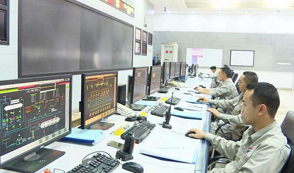 Cán bộ kỹ thuật Nhà máy Nhiệt điện Đông Triều theo dõi số liệu của hệ thống quan trắc và truyền số liệu quan trắc môi trường tự động.
