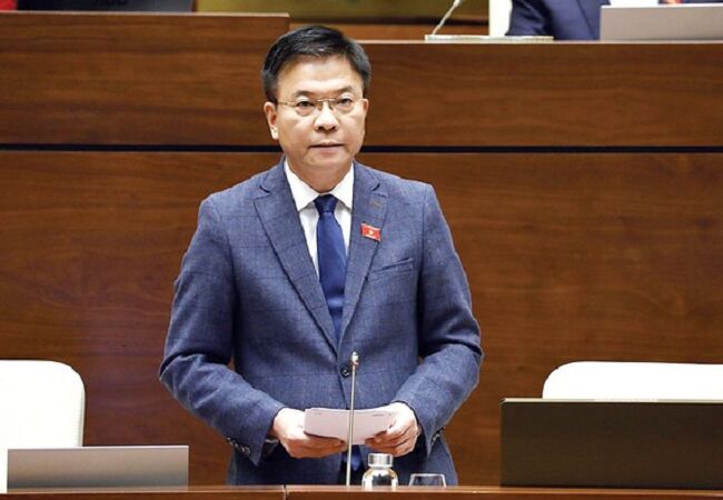 Bộ trưởng Bộ Tư pháp Lê Thành Long giải trình ý kiến của đại biểu Quốc hội Ảnh: TTXVN