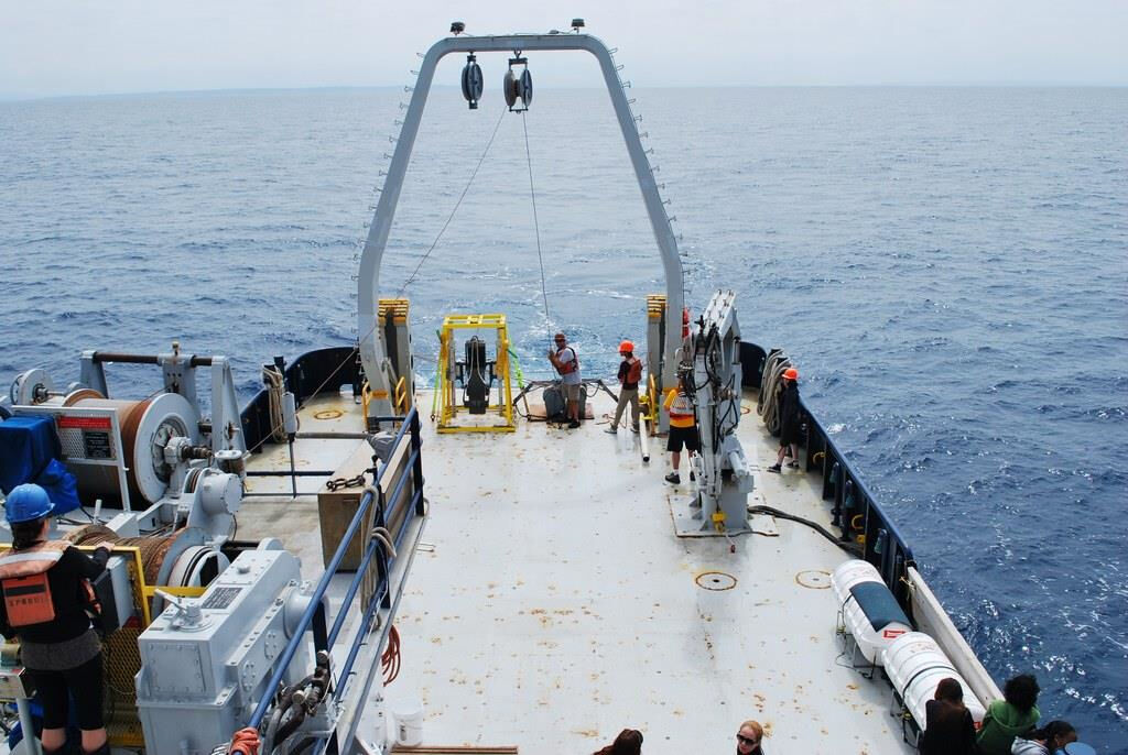 Các chuyên gia thu thập trầm tích ngoài khơi California.