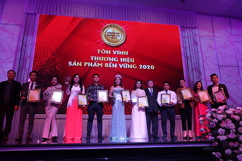 Doanh nhân Đào Thị Yến Nhi (giữa) nhận chứng nhận “Thương hiệu - Sản phẩm bền vững” 2020