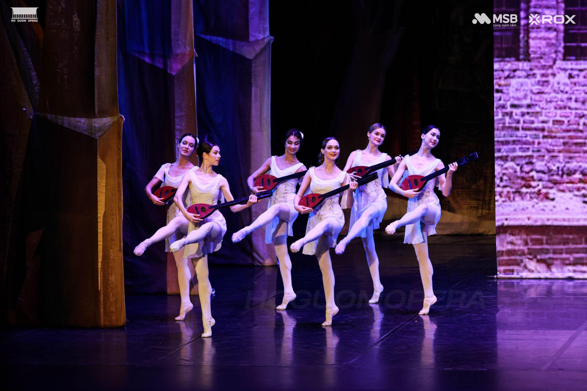 Các màn múa đôi (pas de deux) được thể hiện với kỹ thuật điêu luyện và sự phối hợp ăn ý giữa các nghệ sĩ, mở ra các cao trào cảm xúc là điểm nhấn của vở diễn.