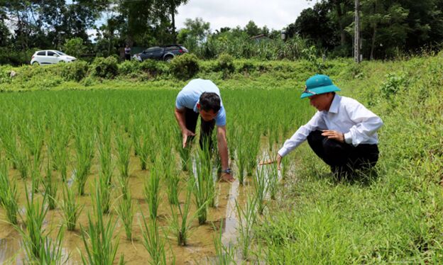 Thành viên HTX Nếp Gà gáy Mỹ Lung (huyện Yên Lập) chăm sóc lúa nếp vụ mùa năm 2020.