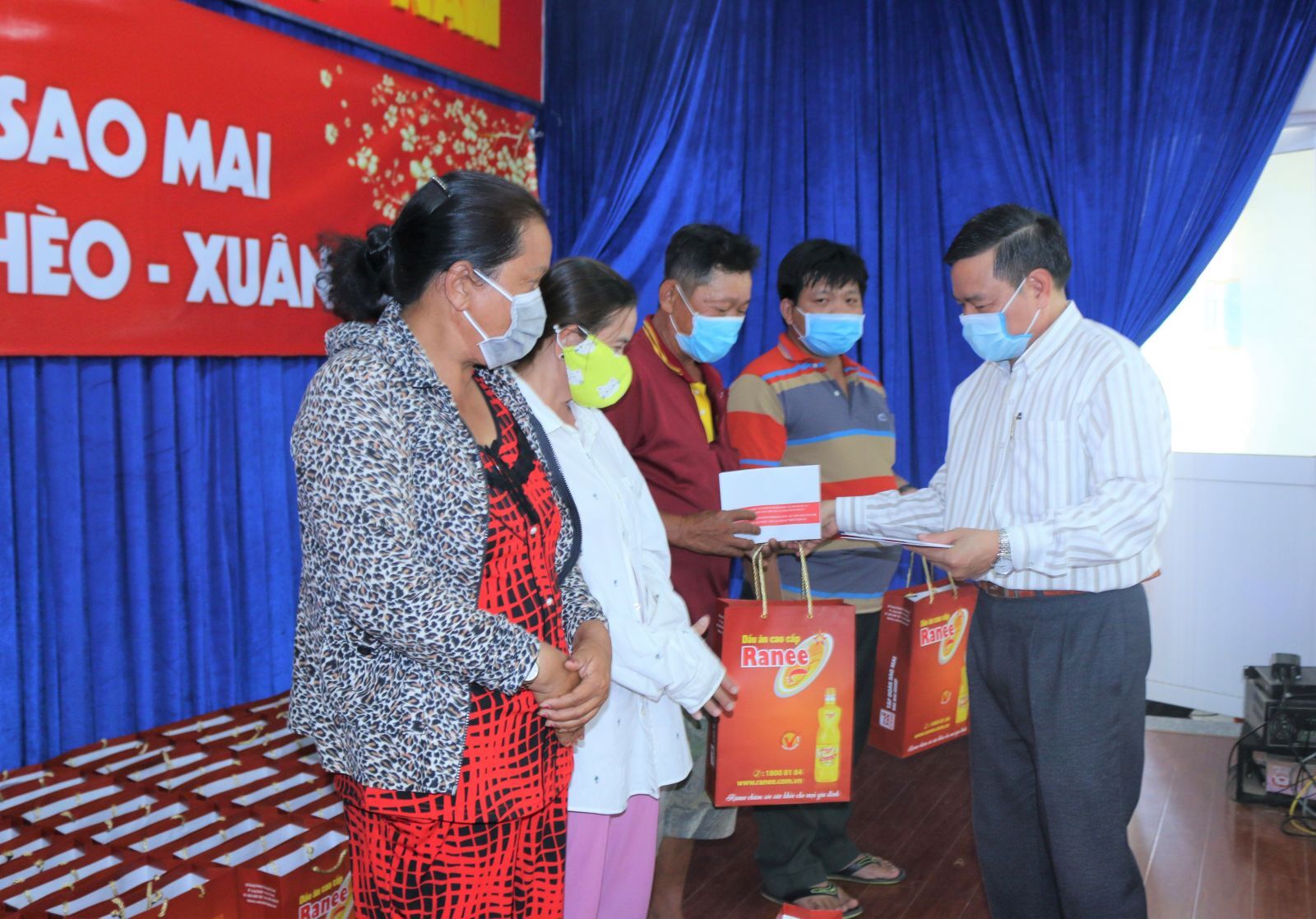 Ông Nguyễn Văn Quang - Chủ tịch Công đoàn Sao Mai Group tặng quà tại các phường, xã của TP. Long Xuyên.