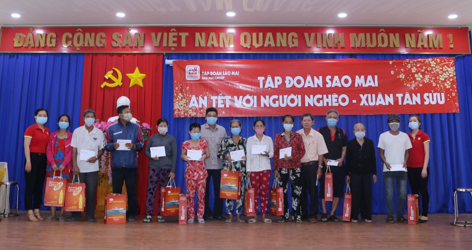 Xuân về Tết đến - Sao Mai Group lại tiếp tục thể hiện “nghĩa đồng bào” đến khắp các tỉnh ĐBSCL, vươn ra khúc ruột Miền Trung tang thương vì bão lũ. Với tổng kinh phí hơn 20 tỷ đồng, tăng gần 50% so với năm trước; Sao Mai đã tài trợ trên 10.000 phần quà, tài trợ kinh phí bắn pháo hoa mừng xuân Tân Sửu, hơn 12 tỷ đồng để chỉnh trang các đô thị Long Xuyên, Châu Đốc, Châu Thành, Châu Phú, Chợ Mới, Tân Châu và 1 số địa phương tỉnh Đồng Tháp, Thanh Hóa. Đặc biệt, Tập đoàn đã tài trợ cho Công an tỉnh An Giang 2 xe chuyên dụng thực hiện mô hình cấp cứu người bị tai nạn giao thông. Đồng thời, tổ chức tặng quà, hỗ trợ kinh phí cho một số bệnh nhân, CBCNV của Tập đoàn mắc bệnh hiểm nghèo có điều kiện điều trị tốt hơn. Ngoài ra, Sao Mai còn tặng tivi cho trường học ở các địa phương khó khăn; đóng góp vào Quỹ Khuyến học - Khuyến tài, Quỹ tiếp sức tài năng trong và ngoài tỉnh….