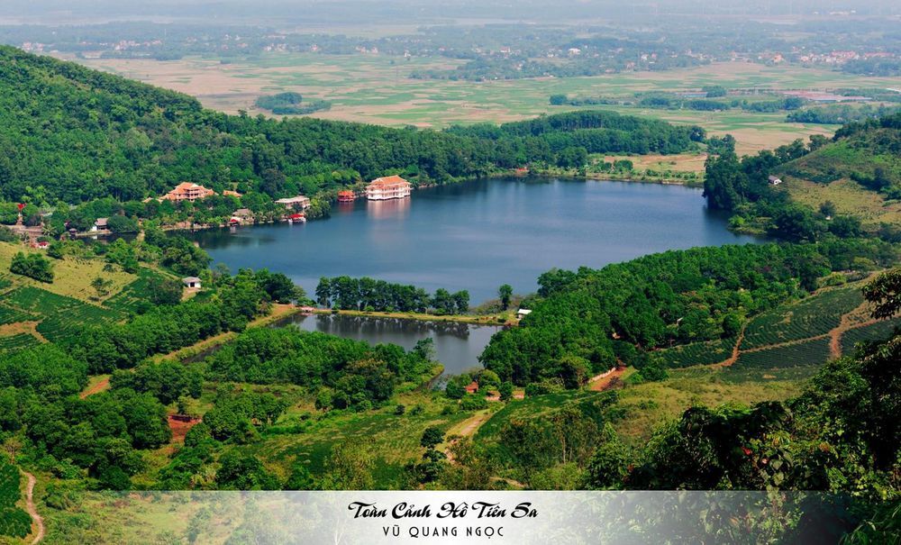 Hồ Tiên Sơn (huyện Ba Vì) nhìn từ trên cao.