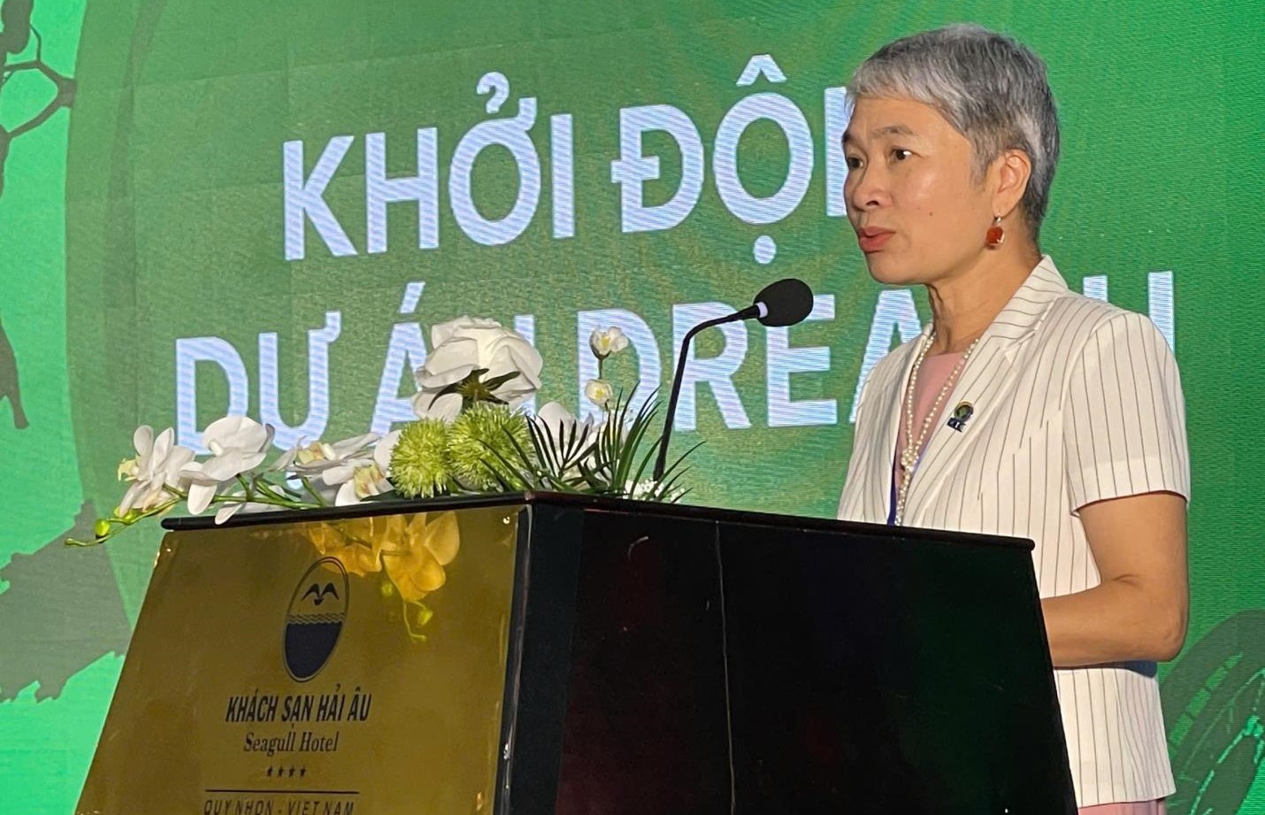 Giám đốc Trung tâm Hỗ trợ Sáng kiến Phát triển Cộng đồng (SCDI) – Bà Khuất Thị Hải Oanh phát biểu tại lễ khởi động Dự án DREAM H