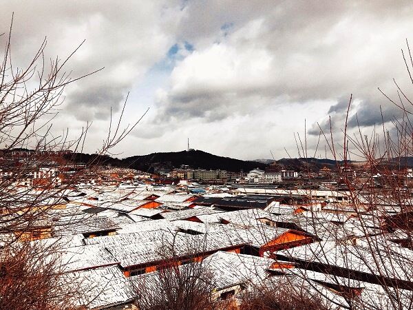 Khung cảnh Shangrila trong buổi sớm mai với những mái nhà tuyết phủ trắng
