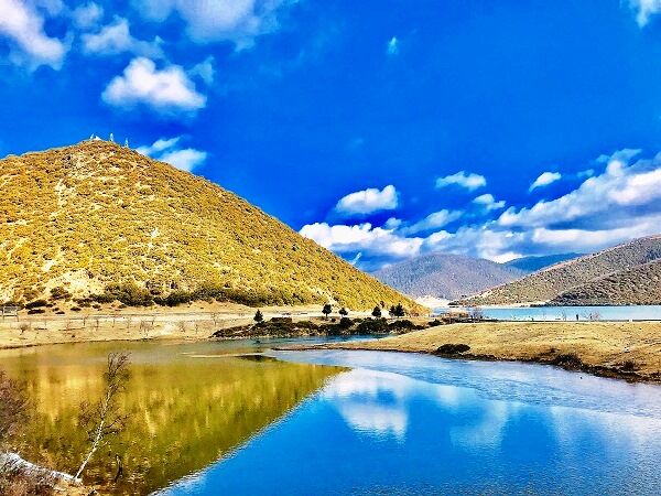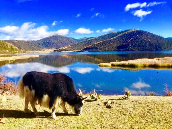 Đến với Shangrila, cảnh tượng làm tôi ấn tượng đầu tiên đó là ánh nắng vàng ươm, bầu trời trong vắt phản chiếu dưới bóng hồ nước ngọt phẳng lặng, đàn bò Yak với bộ lông dài nhẩn nha trên thảo nguyên, một chút gió lạnh tê tái cùng tuyết trắng xóa bao phủ trên đỉnh núi Thạch Ca. Có cảm giác cả trời và đất đều đang hội tụ về đây, đường chân trời xa tít tắp.