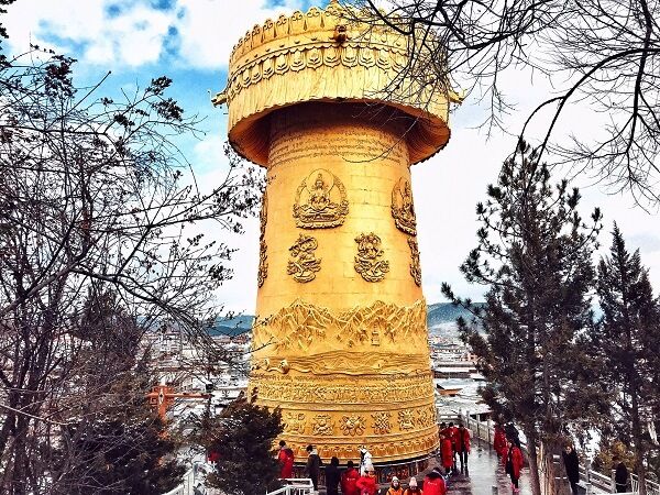Để quan sát toàn bộ phố cổ, từ quảng trường Ánh Trăng, bạn cần leo lên một ngọn đồi cao, ngôi chùa Đại Phật Tự như ôm gọn cả vùng Shangrila trong tầm mắt. Bất cứ ai đặt chân lên ngôi chùa này, đều thử sức quay Chuyển pháp luân kinh khổng lồ theo chiều kim đồng hồ một lần, để cầu nguyện may mắn, hạnh phúc cho những người thân yêu. Vào buổi tối, ánh đèn thắp sáng khiến cả ngôi chùa trở nên lung linh, huyền ảo như thánh địa bất khả xâm phạm của người Tạng.