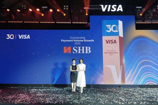 Vừa qua, trong khuôn khổ Hội nghị khách hàng VISA Việt Nam 2025 (Visa Vietnam Client Forum 2025) - sự kiện đặc biệt kỷ niệm 30 năm VISA hoạt động tại Việt Nam, diễn ra tại Phú Quốc, SHB vinh dự tiếp tục được Tổ chức thẻ quốc tế Visa vinh danh với giải thưởng “Payment Volume Growth 2025 - Ngân hàng có sự tăng trưởng doanh số giao dịch ấn tượng năm 2025”.