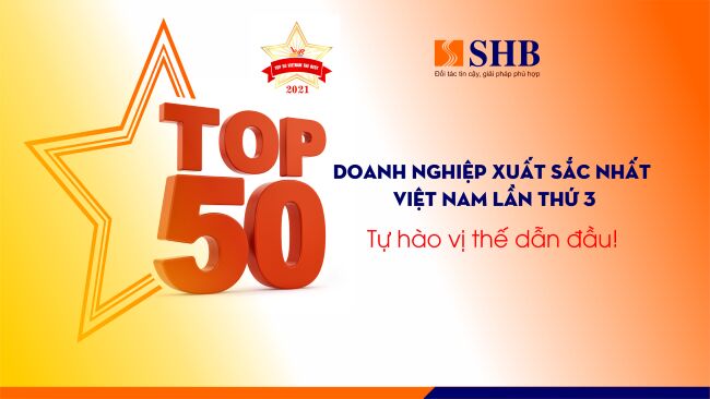 VNR500 - Top 500 doanh nghiệp lớn nhất Việt Nam là bảng xếp hạng uy tín đã có mặt từ năm 2007, được công bố dựa trên kết quả nghiên cứu và đánh giá độc lập theo chuẩn mực quốc tế của Vietnam Report. Trong khuôn khổ VNR500, Vietnam Report đã vinh danh SHB là “Top 50 Doanh nghiệp xuất sắc nhất Việt Nam”. Giải thưởng tôn vinh những doanh nghiệp có doanh thu xuất sắc trong hoạt động sản xuất kinh doanh trong giai đoạn 2020 – 2021.
