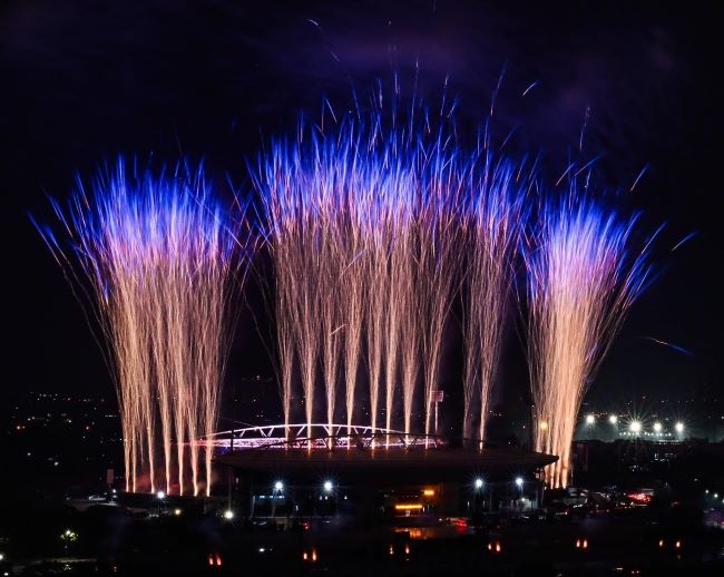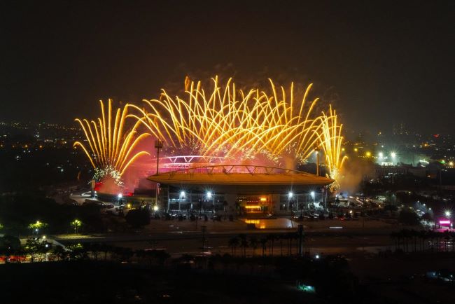 Đặc biệt, bố trí quanh khu vực khán đài B sân vận động là pháo hoa hỏa thuật ống đơn với độ cao ước tính 50 – 90 m, cùng các giàn pháo hỏa thuật loại 1.2 inch độ cao khoảng 50 – 60 m. Tất cả sẽ tạo nên những lớp hiệu ứng ánh sáng liên hoàn, đa tầng, bao phủ toàn bộ không gian trình diễn, tạo nên “bữa tiệc” của âm thanh và ánh sáng.