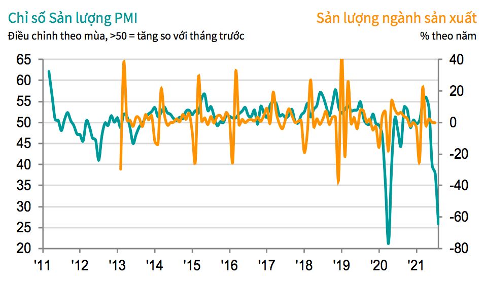 Chuỗi cung ứng mặt hàng chế biến chế tạo như điện, điện tử, máy móc thiết bị… bị đứt gãy liên quan tới các khu vực bị nhiễm dịch mạnh, như thành phố Hồ Chí Minh.