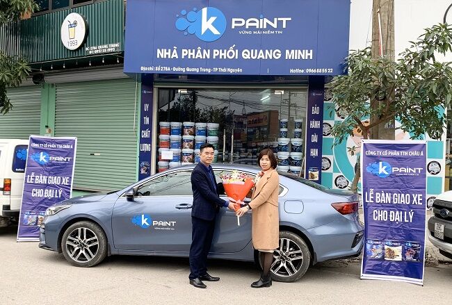 Ông Nguyễn Văn Kiếm - Giám đốc Công ty CP TTH Châu Á bàn giao xe cho đại lý sơn Kpaint tại tỉnh Thái Nguyên