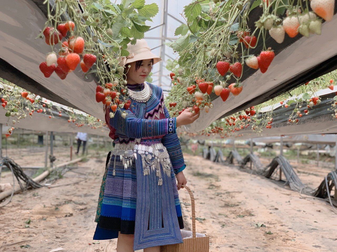 Người dân tộc trồng dâu phục vụ khách du lịch tại bản Tả Phìn