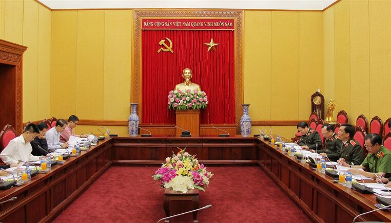 Thượng tướng Nguyễn Văn Thành, Ủy viên Trung ương Đảng, Ủy viên Ban Thường vụ Đảng ủy CATW, Thứ trưởng Bộ Công an; đồng chí Hà Ban, Ủy viên Trung ương Đảng, Phó Trưởng Ban Tổ chức Trung ương đồng chủ trì buổi làm việc.