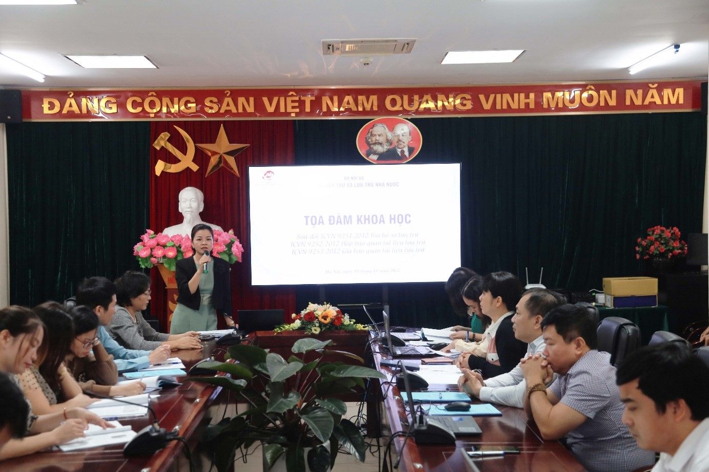 Các đại biểu đã thẳng thắn trao đổi, đặt ra và giải quyết được nhiều vấn đề liên quan đến việc sửa đổi, áp dụng các TCVN 9201:2012 Bìa hồ sơ lưu trữ, TCVN 9202:2012 Hộp bảo quản tài liệu lưu trữ, TCVN 9203:2012 Giá bảo quản tài liệu lưu trữ. Kết quả của tọa đàm đã có những đánh giá, đề xuất cụ thể như: Cần có kế hoạch tổng thể về xây dựng các TCVN trong công tác văn thư, lưu trữ; kịp thời sửa đổi, bổ xung các TCVN đã không còn phù hợp; cập nhật, hài hòa các TCVN với các tiêu chuẩn quốc tế về công tác văn thư, lưu trữ; tằng cường đầu tư kinh phí cho công tác xây dựng TCVN trong thời gian tới…