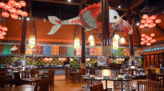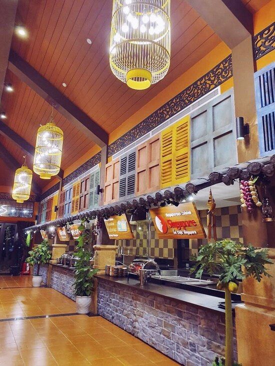 Tọa lạc bên trong công viên Sun World Danang Wonders, nhà hàng Buffet World – Thế giới Buffet giống như một thứ “gia vị đặc biệt” đem đến cho ẩm thực thành phố sông Hàn một “luồng gió mới”, giữa vô số những lựa chọn chỉ thiên về hải sản. Thiết kế tổng thể của nhà hàng khiến thực khách như lạc vào một miền bình yên, êm dịu. Ba khu nhà mái lá bao quanh một khoảng sân vườn thoáng đãng với những bóng cây xanh mát. Không gian bên trong ấm áp với nội thất gỗ và các chi tiết trang trí mang âm hưởng kiến trúc Châu Á cổ điển. Đây đó những ô cửa chớp sơn nhiều mầu trên cao gợi nhớ các khu tiểu Ấn, mái hiên trước mỗi quầy buffet lại khiến ta liên tưởng tới góc phố cổ Hội An. Một chút kiến trúc Thái Lan, một chút Indonesia… dẫn dắt tâm trí thực khách du ngoạn qua những miền văn hóa.