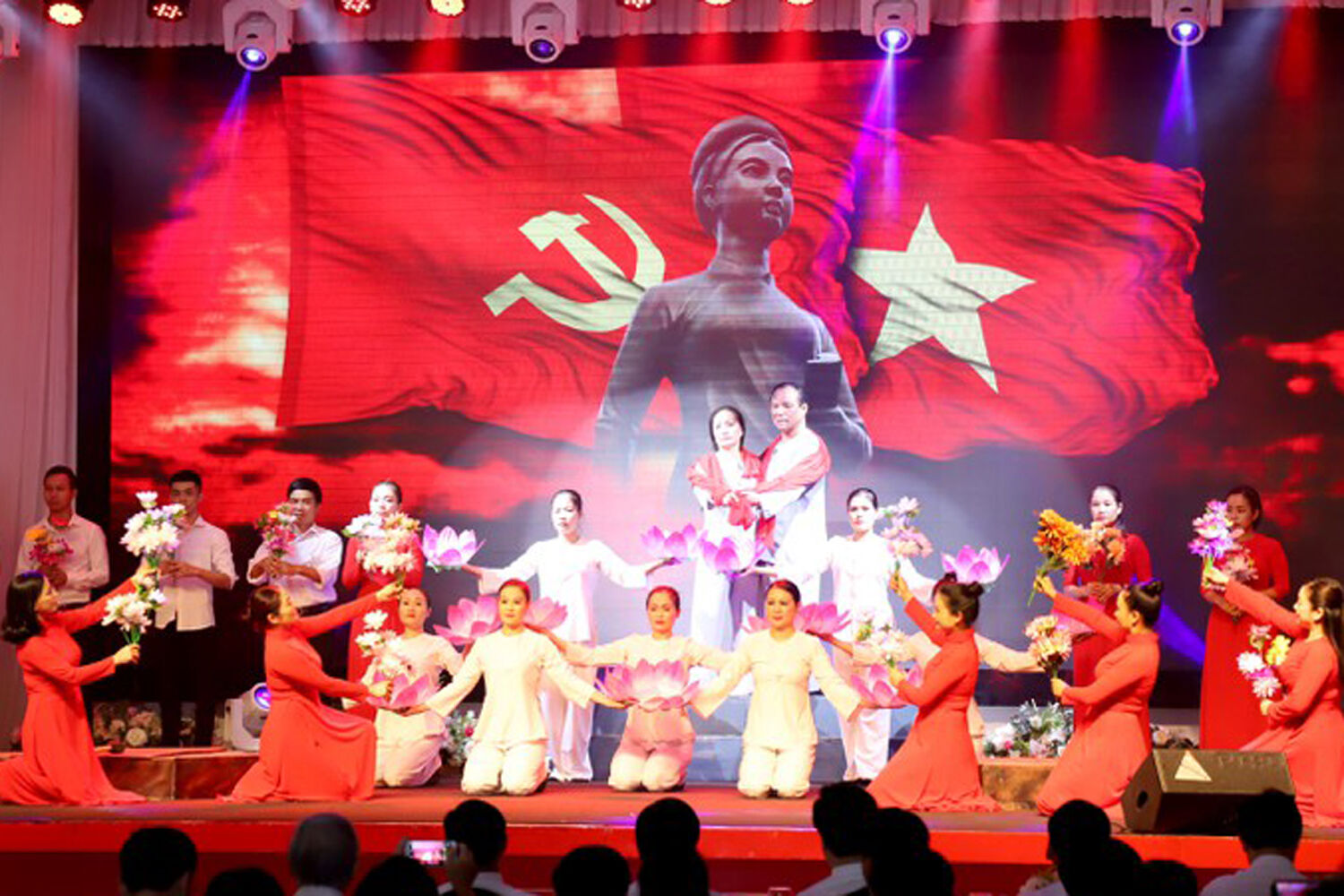 Chương trình văn nghệ tại Lễ kỷ niệm 110 năm Ngày sinh đồng chí Nguyễn Thị Minh Khai. Ảnh: Báo Nghệ An