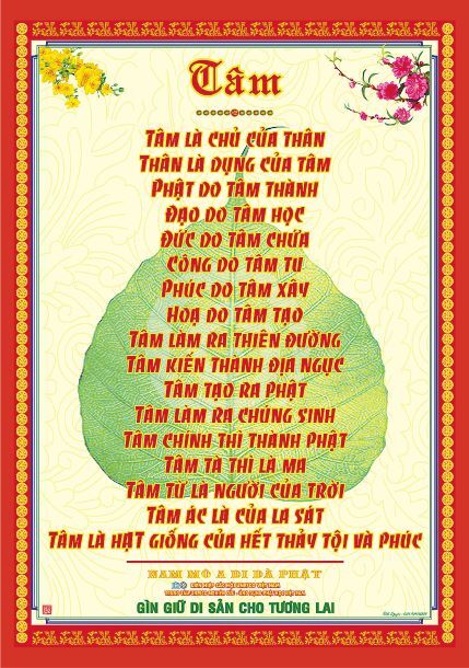 TÂM Phật dạy: “ TÂM LÀM CHỦ CỦA THÂN” Tâm người có thể nói là lòng tin – Niềm tin như đôi cánh để bay lên và bay cao. Niềm tin là sức mạnh, là điểm tựa để vững bước trên đường sống, Tâm lòng tin là cội gốc của nhân cách con người và giá trị cuộc sống, lòng tin (hay niềm tin, chữ tín - tín tâm) là một trong số những giá trị cao trọng hàng đầu, làm nên chuẩn mực và nền tảng trong các mối quan hệ con người và xã hội. Vậy Niềm tin đó chính là Tâm Thành, ở sự chân thành hay thành Tâm…