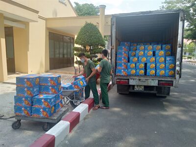 Trước đó, Trung tâm Phát thanh - Truyền hình Quân đội và Tập đoàn Tân Hiệp Phát đã trao tặng 400 thùng nước giải khát cùng lời thăm hỏi, động viên, chia sẻ với những khó khăn mà tập thể cán bộ, chiến sĩ, học viên trường Quân sự Quân khu 7 đang gặp trong quá trình thực hiện nhiệm vụ tiếp nhận và chăm sóc các công dân từ vùng dịch trở về Việt Nam. Đây là nghĩa cử tốt đẹp của Tập đoàn Tân Hiệp Phát, chung tay cùng toàn xã hội quyết đẩy lùi đại dịch Covid-19.