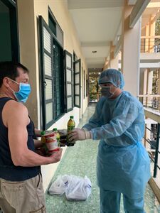 Trao tặng sản phẩm cho công dân cách ly tập trung.