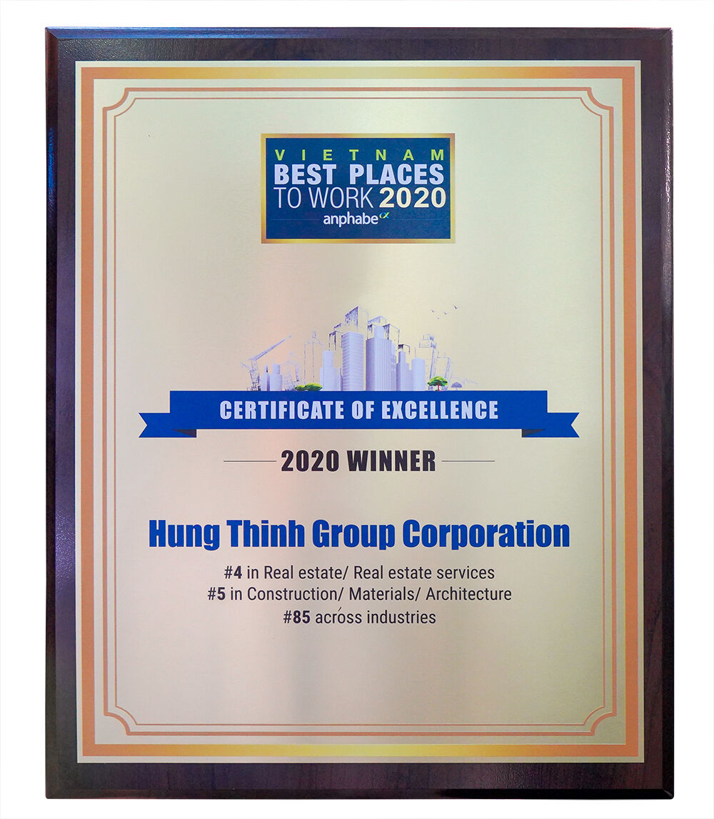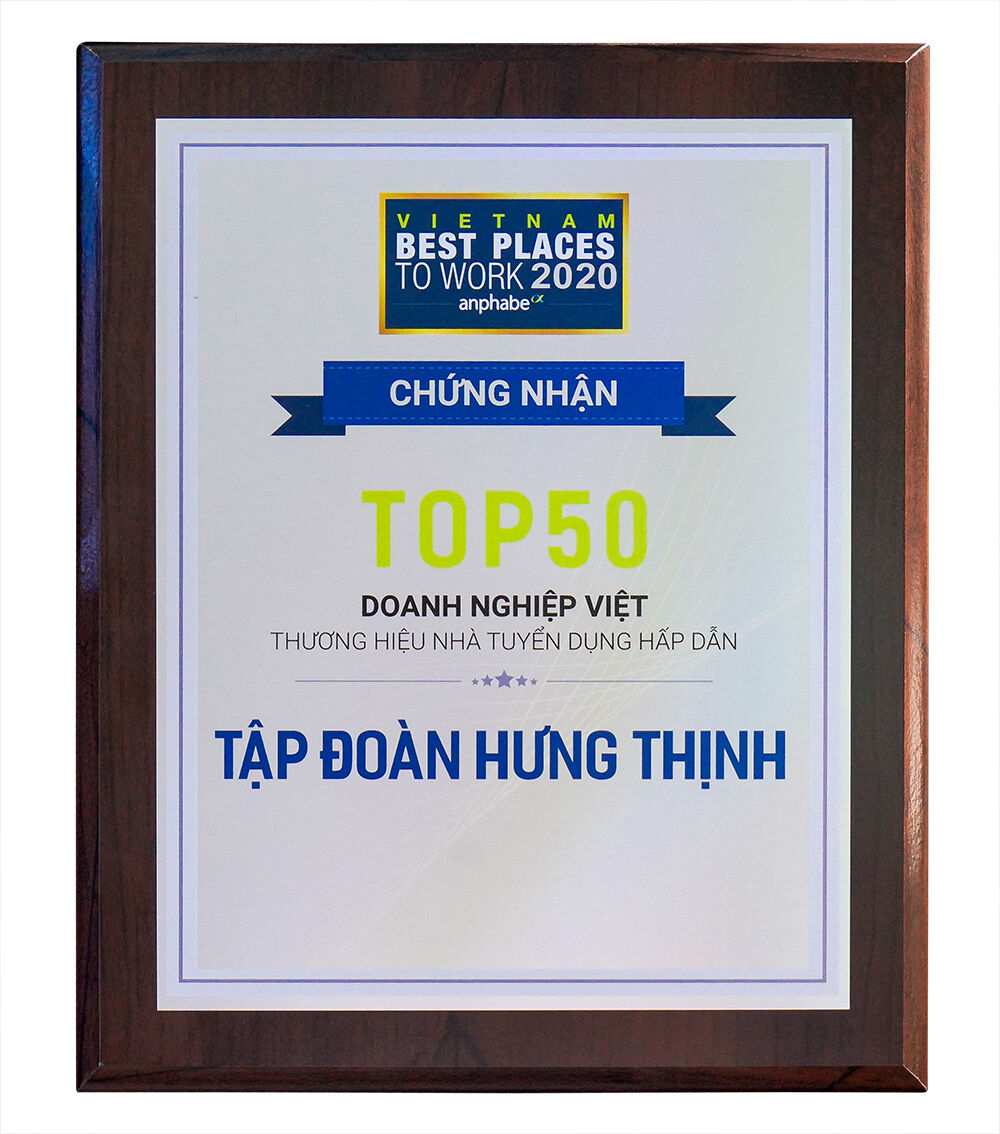 Tại hội nghị và lễ vinh danh Nơi làm việc tốt nhất Việt Nam 2020 với chủ đề “Vượt chướng ngại – Mở lối riêng” (New Race – New Way), Anphabe đã công bố Danh sách 100 Nơi làm việc tốt nhất Việt Nam 2020. Vượt qua cuộc đo lường trên 559 doanh nghiệp thuộc 20 ngành nghề với sự tham gia của 71.460 người đi làm có kinh nghiệm, Tập đoàn Hưng Thịnh đã vinh dự trở thành 1 trong số 100 nơi làm việc tốt nhất Việt Nam 2020.