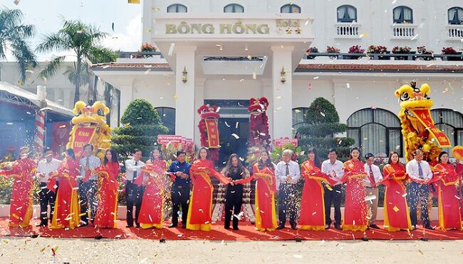 Các đại biểu cắt băng khánh thành khách sạn Bông Hồng