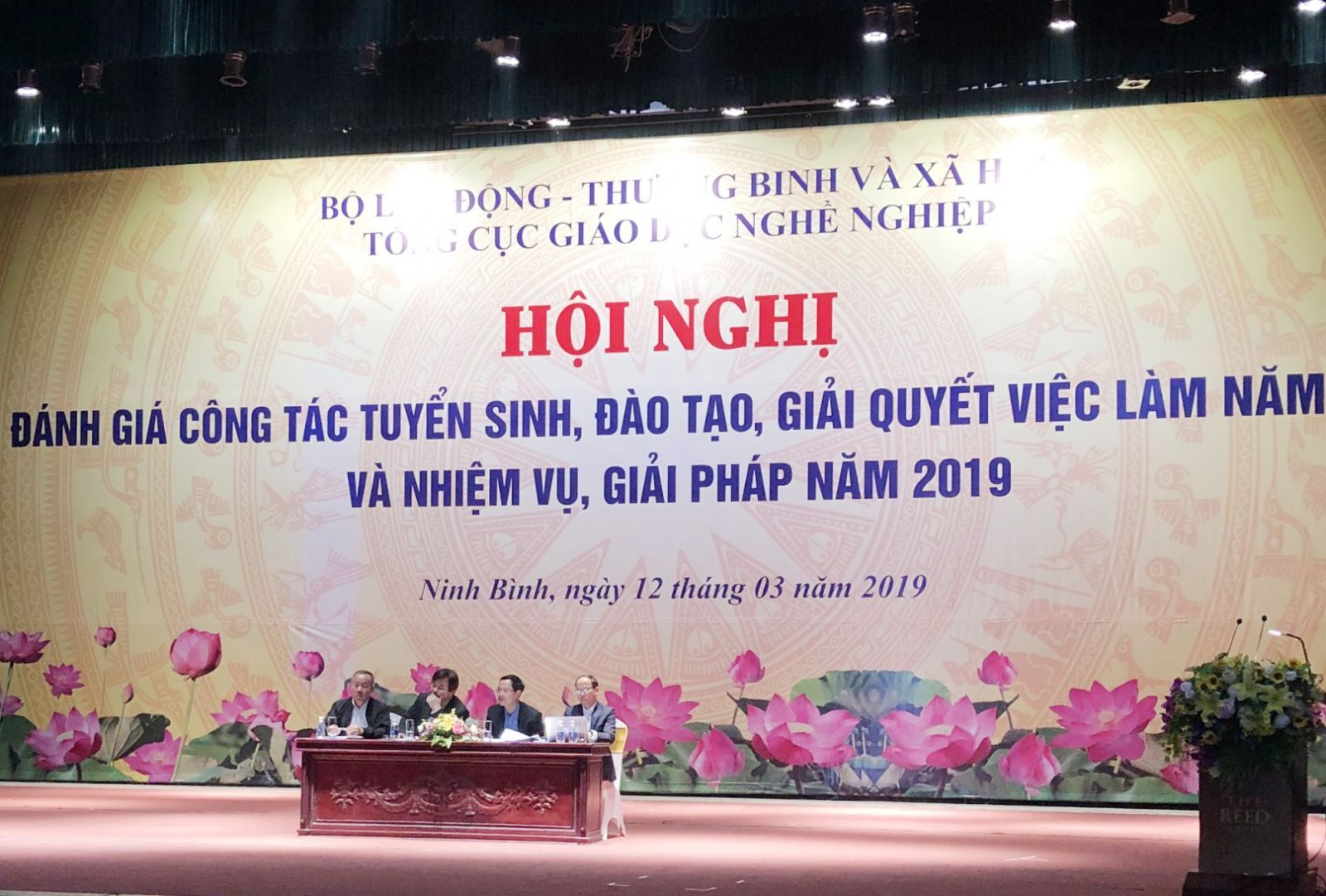 Đây là hội nghị tổng kết công tác tuyển sinh và việc làm năm 2018, đề ra kế hoạch giải pháp tuyển sinh năm 2019 cũng là năm thứ hai Bộ LĐ-TB&XH chính thức tiếp nhận quản lý nhà nước lĩnh vực giáo dục nghề nghiệp;