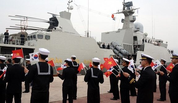 Binh sĩ Hàn Quốc chào mừng Tàu 015-Trần Hưng Đạo