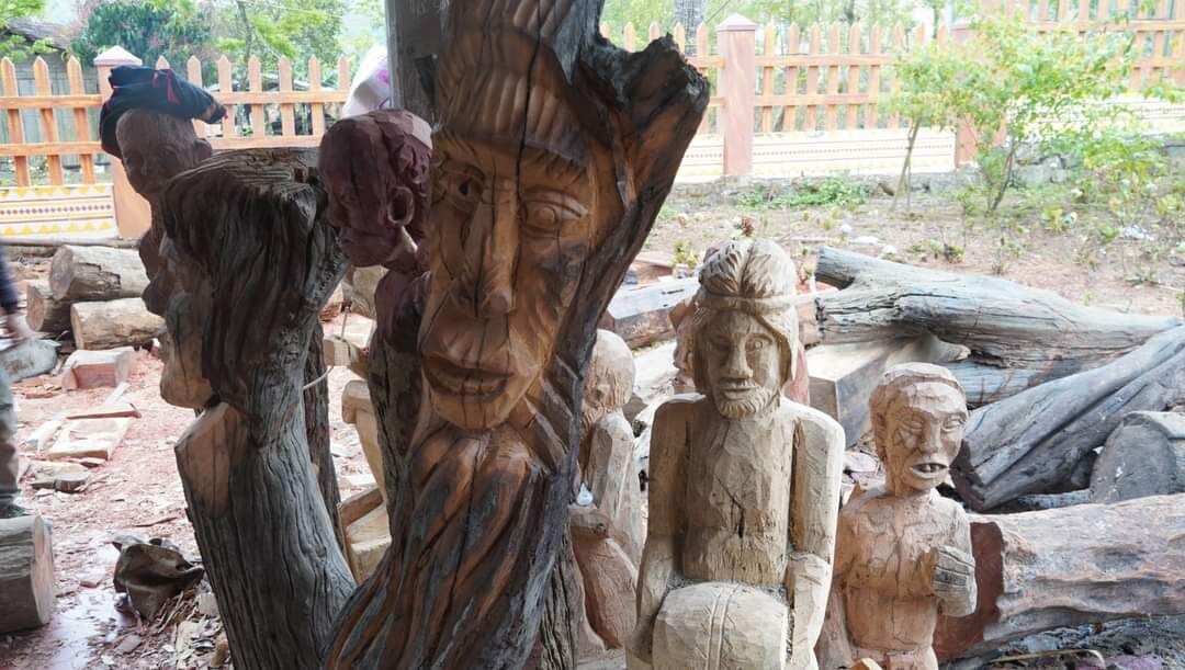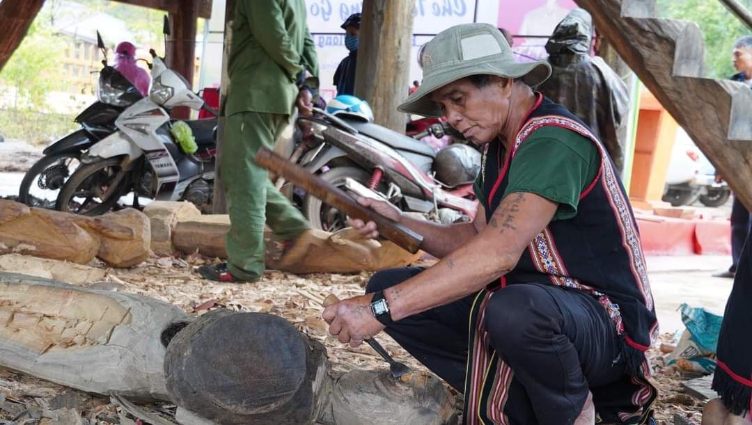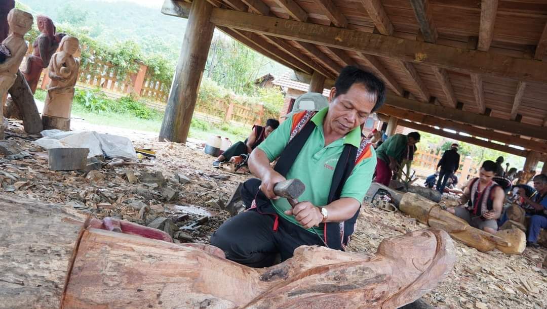 Toàn cảnh hội thi tạc tượng tại huyện Kon Plong tỉnh Kon Tum.