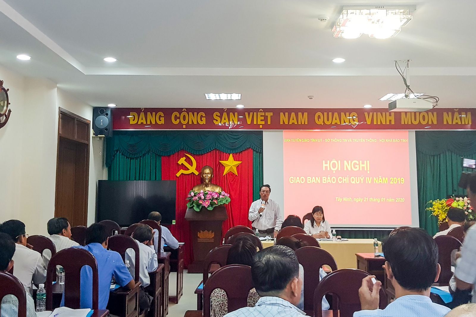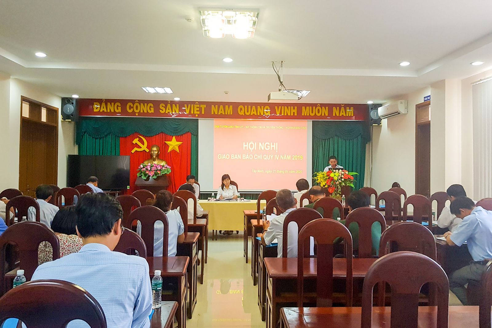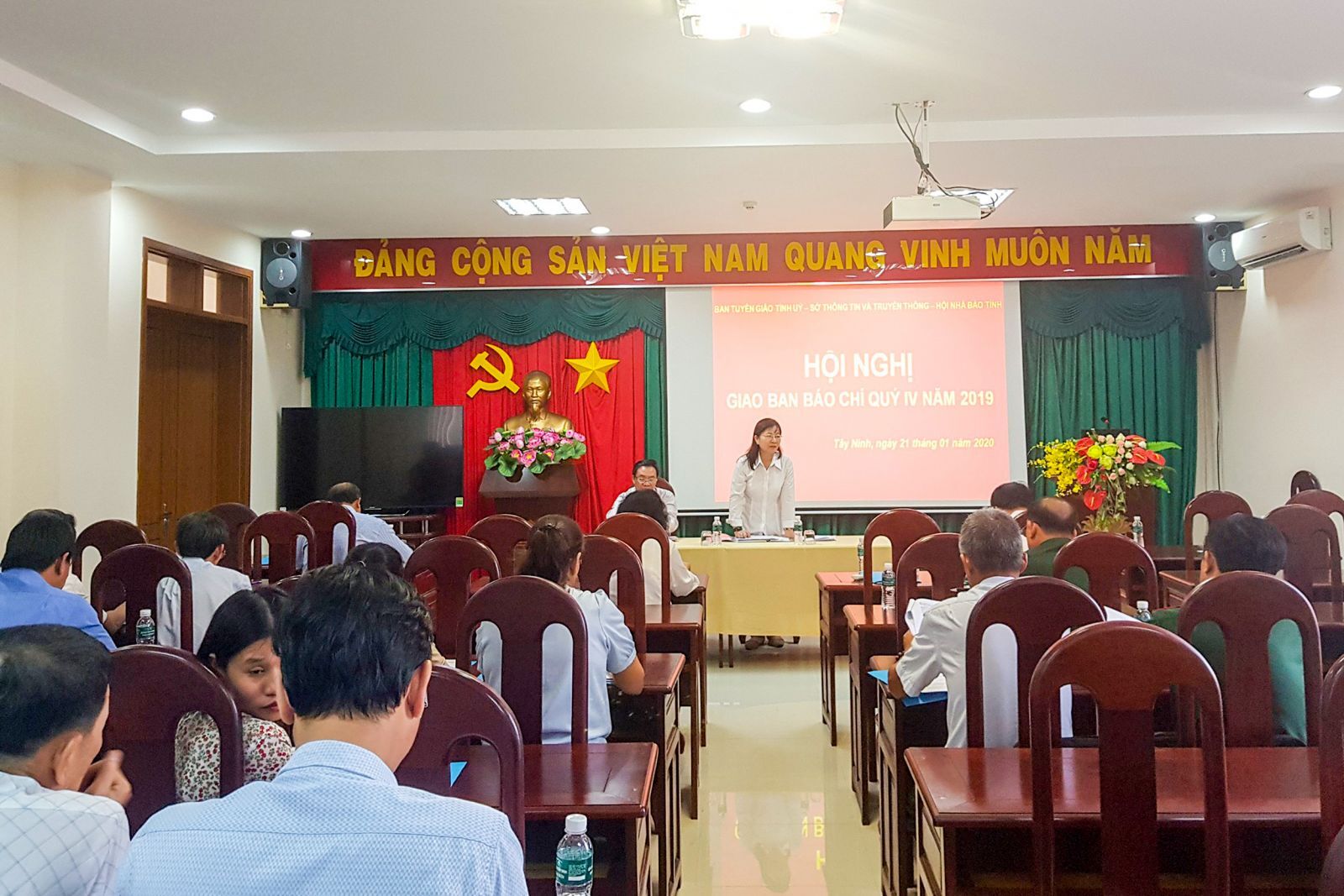 VNHN - Ngày 21/01/2020 vừa qua, Ban Tuyên giáo tỉnh phối hợp Sở Thông tin và Truyền thông tỉnh Tây Ninh, tổ chức Hội nghị giao ban báo chí quý IV năm 2019. Đồng thời nhầm tổng kết, đánh giá chung lại kết quả và mục tiêu đã hoàn thành trong năm qua. Để có thể khắc phục những hạn chế và giao ban công tác quý IV năm 2019 tỉnh Tây Ninh.