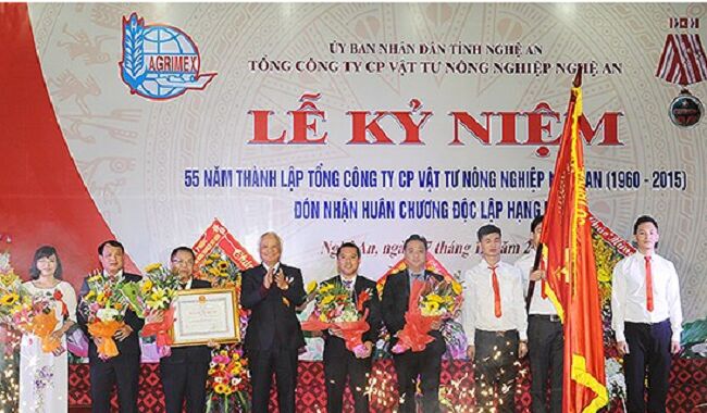 Phó Chủ tịch Quốc Hội Uông Chu Lưu trao Huân chương Độc lập hạng Nhất cho TCT Vật tư Nông nghiệp Nghệ An