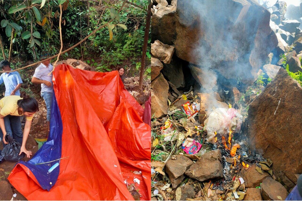 Du khách dọn dẹp sau những cuộc vui chơi, ăn uống.
