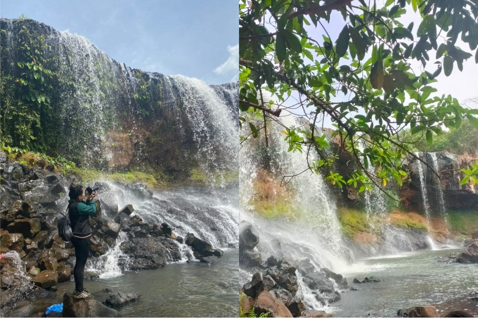 Thác nước tuyệt đẹp, nước trên cao đổ xuống từng bậc đá, chảy qua các tầng đá xếp lớp tạo thành những bậc thác tung bọt trắng xóa, khung cảnh thơ mộng làm tan chảy trái tim du khách, hòa quyện cùng thiên nhiên.