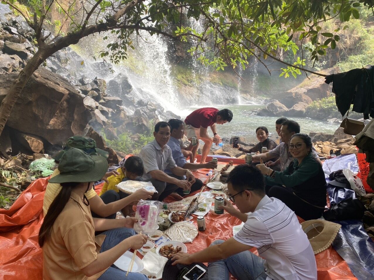 Du khách đến tham quan, trải nghiệm tại thác Mơ.