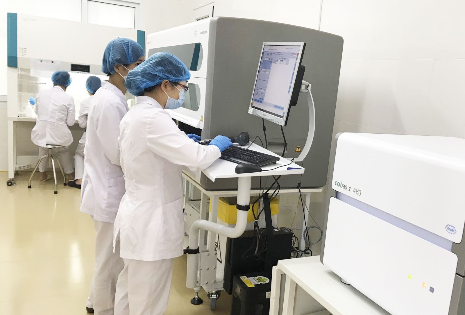 Cán bộ CDC Thái Bình vận hành hệ thống xét nghiệm sinh học phân tử (Ảnh: CDC Thái Bình cung cấp)